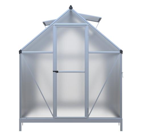 Hliníkový skleník, š 1,82 x d 2,43 m, strieborný, 2x str. okno, polykarbonát 4 mm, dvere na pantoch, plocha 4,42 m2.